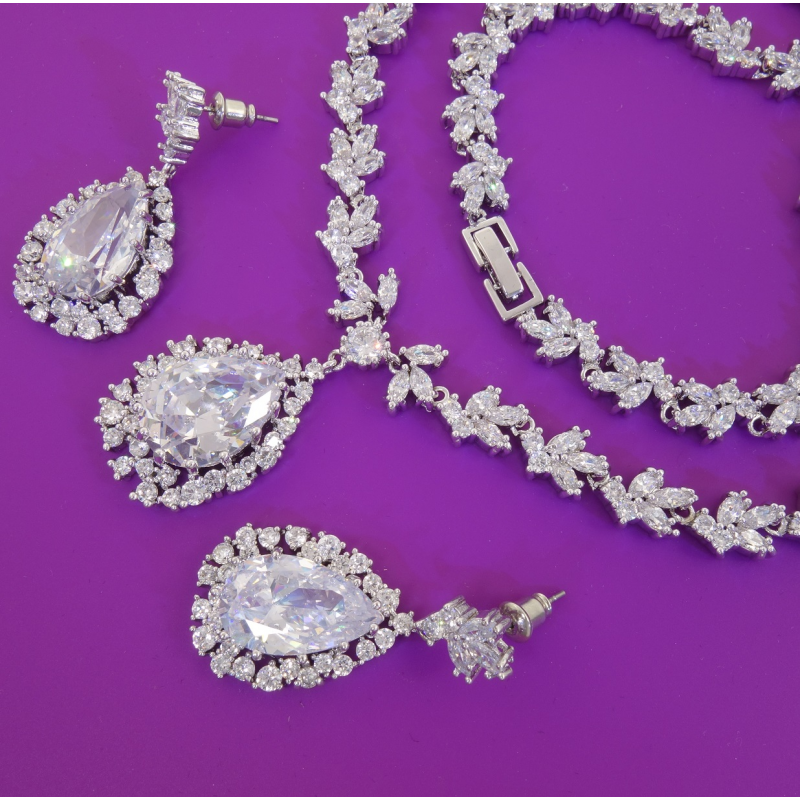 Elegancki ślubny komplet rodowany. Doda blasku Pannie Młodej. Wykonane na najwyższym poziomie sztuki jubilerskiej przez Firmę Xuping. Xuping biżuteria. Zrobione by zadowolić pragnienia każdej kobiety.