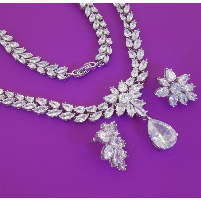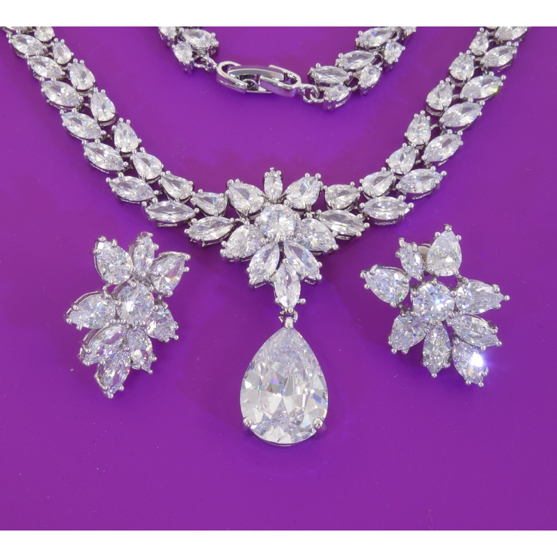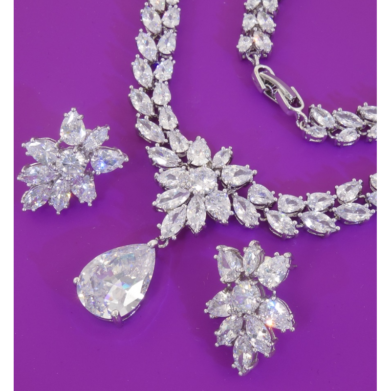 Elegancki ślubny komplet rodowany. Doda blasku Pannie Młodej. Wykonane na najwyższym poziomie sztuki jubilerskiej przez Firmę Xuping. Xuping biżuteria. Zrobione by zadowolić pragnienia każdej kobiety.