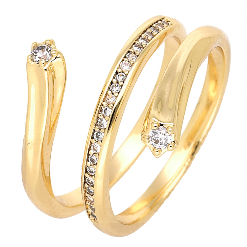 PIERŚCIONEK POZŁACANY 15 MM SPIRALA Z BRYLANTAMI XUPING 69685