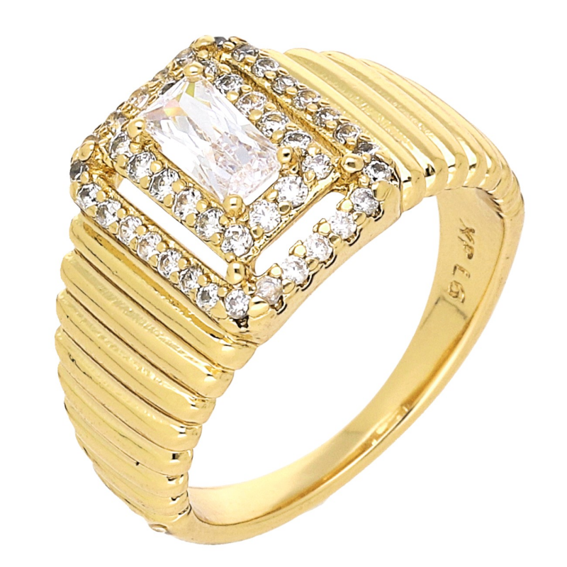 PIERŚCIONEK POZŁACANY 12 MM BRYLANTOWY SYGNET XUPING 70874