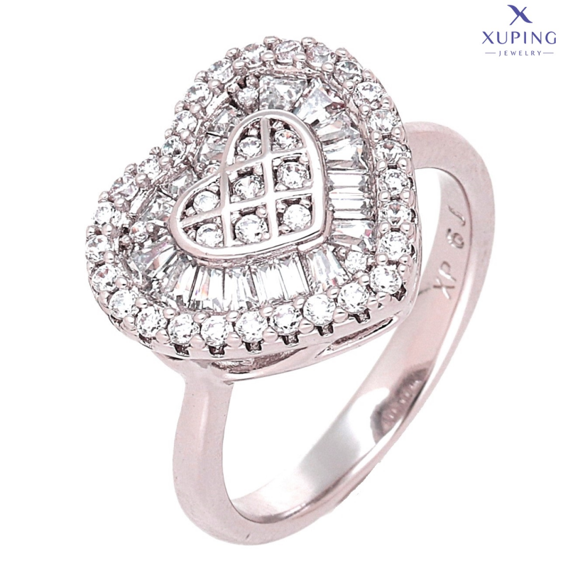 PIERŚCIONEK PLATYNOWANY 14 MM BRYLANTOWE SERCE XUPING 75093
