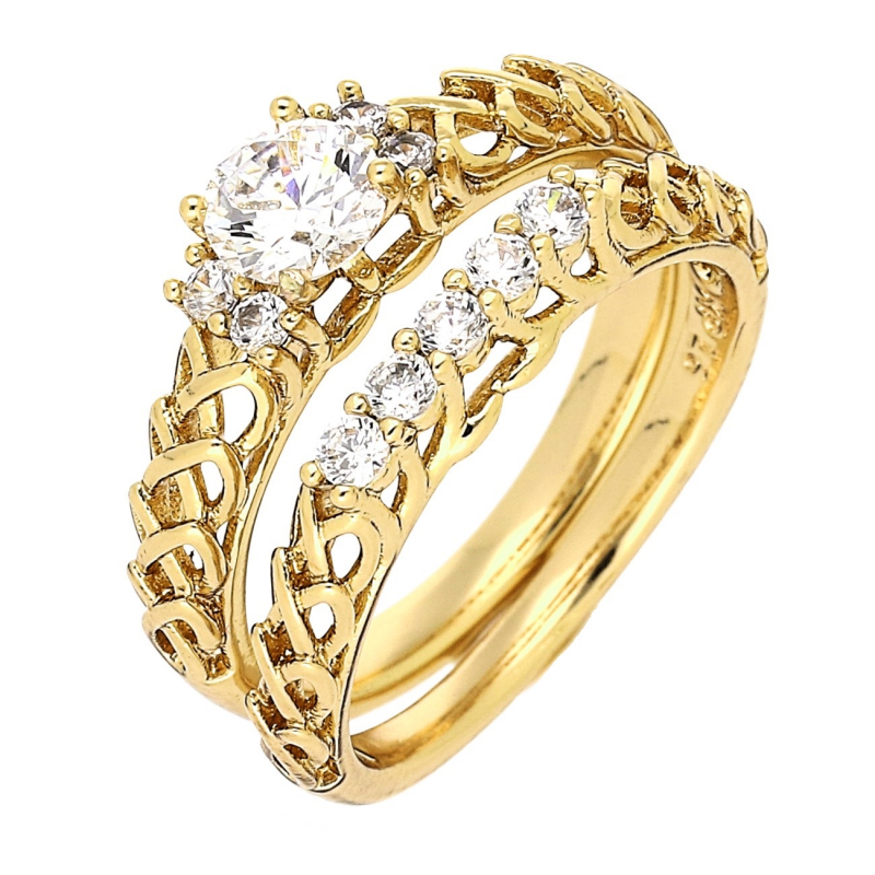 DWA PIERŚCIONEKI POZŁACANE 7 MM AŻUR Z BRYLANTAMI XUPING 79570