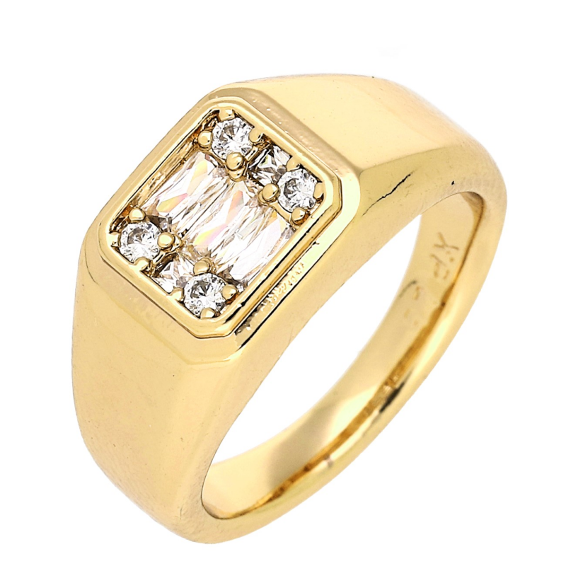 PIERŚCIONEK POZŁACANY 9 MM SYGNECIK Z BRYLANTAMI XUPING 82776