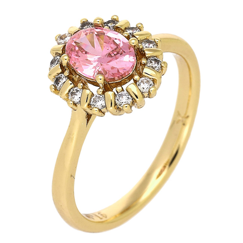 PIERŚCIONEK POZŁACANY 12 MM MARKIZA RÓŻOWY BRYLANT XUPING 86266