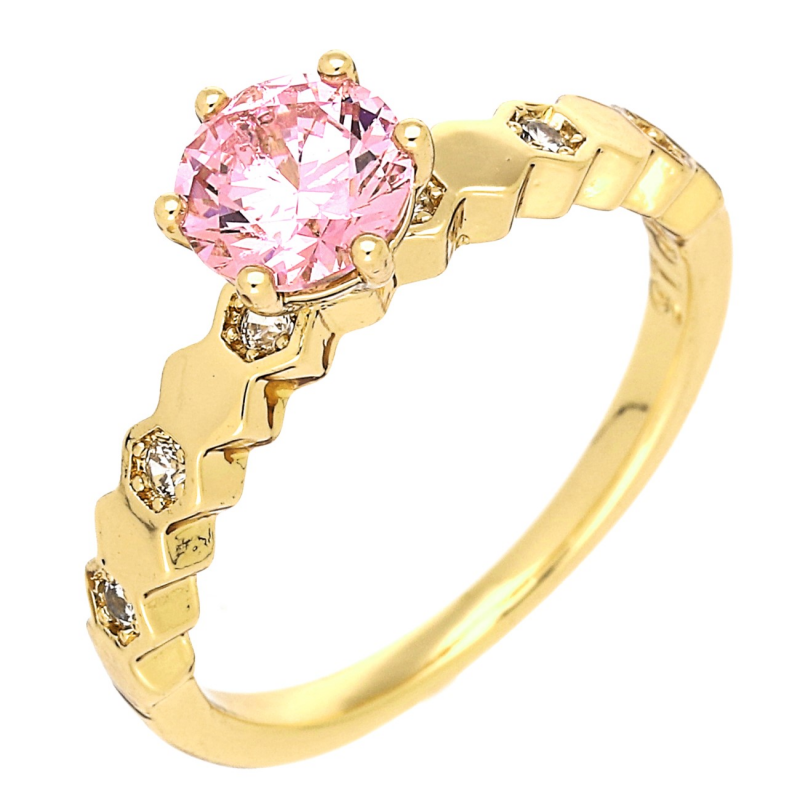 PIERŚCIONEK POZŁACANY 7 MM RÓŻOWY BRYLANT ZARĘCZYNOWY XUPING 87631